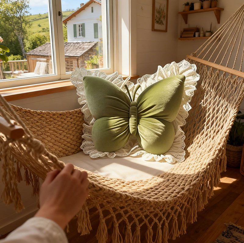 Butterfly Lace-Edge Velvet Pillow – Whimsical Comfort & Elegant Support