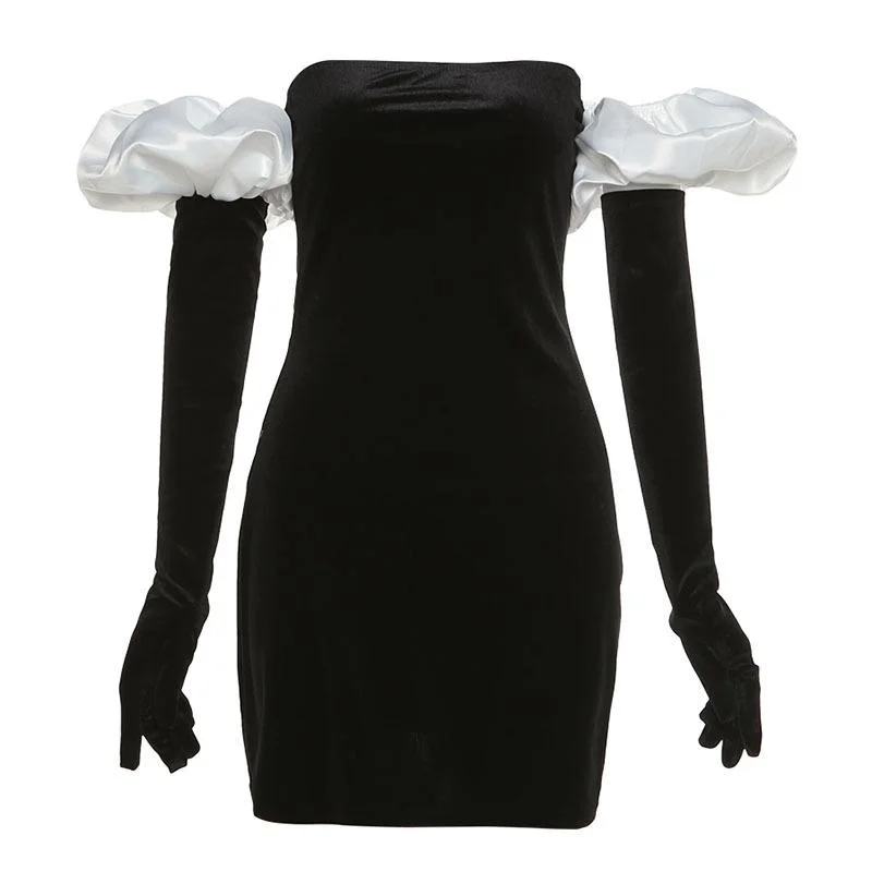 snowdoves-TM --Puff sleeve off shoulder corduroy mini dress