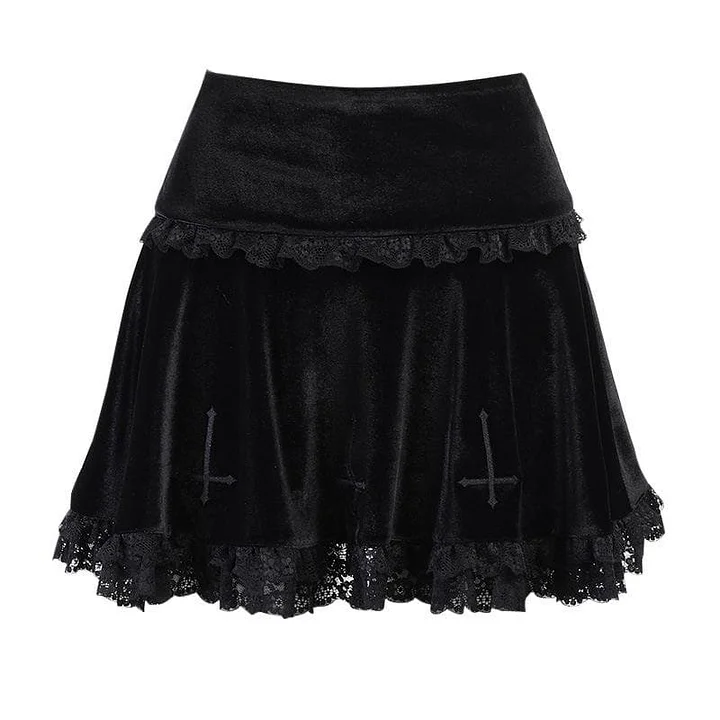 snowdoves-TM--Solid A line lace hem spider web pattern mini skirt